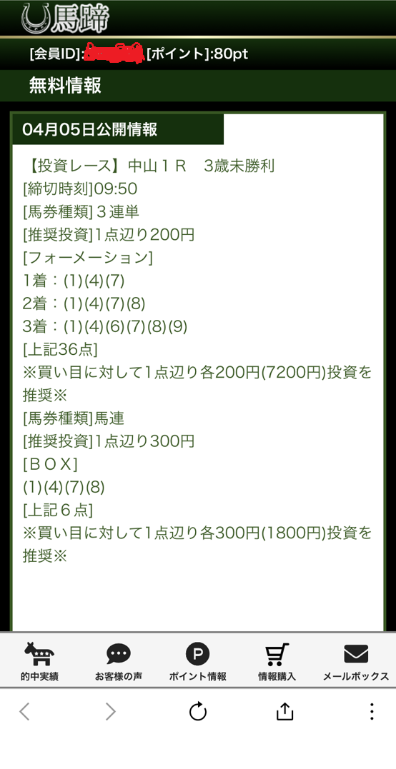 的中率ここはかなり低いのでお気を付けてください。 騙されないようにm(__)m