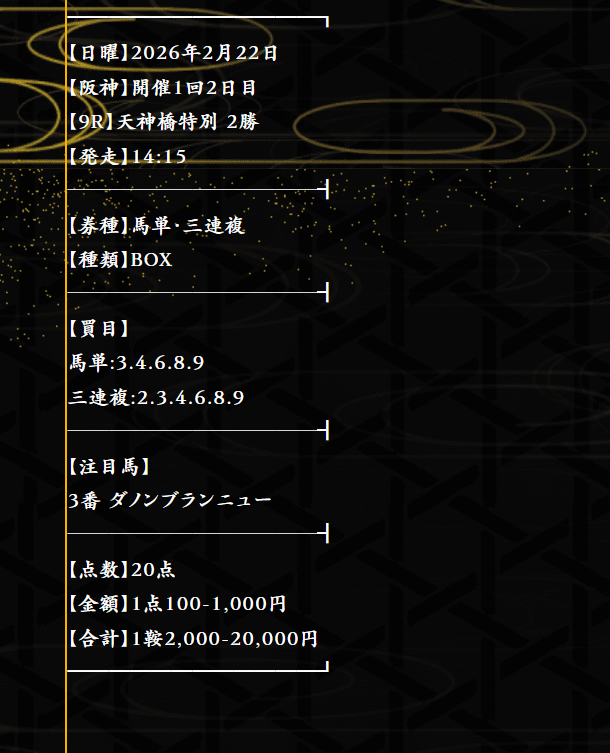 無料情報2発2的中でした、配当も22万8300円と申し分なし! こんな的中貰えるなら有料情報参加するのがばかばかしくなりますね!
