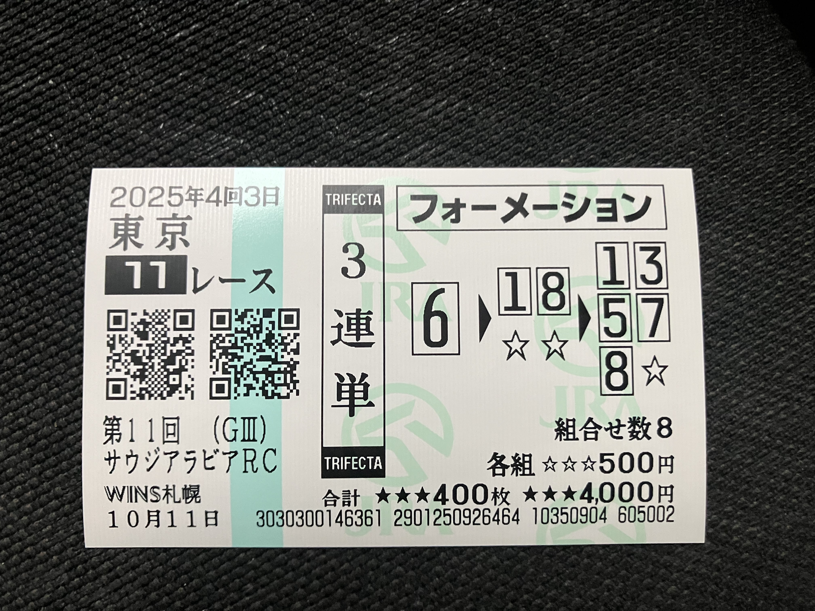 久しぶり嬉しい的中&万馬券的中でした!!!!