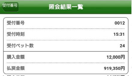 今週は忙しくて参加できなかったけど、この過去レースの的中画像参考までに。 情報料他に比べて安いから参加しやすいし、9割的中するから不的中でもすぐ回収できる。 それどころか貯金残高に0が2つ増えるくらいの勢いで稼げる。 PAT画像見てもらえればわかると思う。