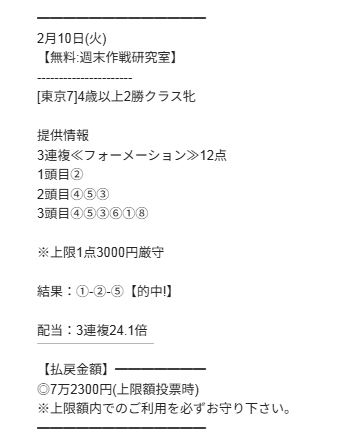 参加してるひとならターフビジョンからメルマガ来てる&的中GETしてるから分かると思うけど、今回も手堅く無料予想で7万2300円払い戻しは嬉しいね!