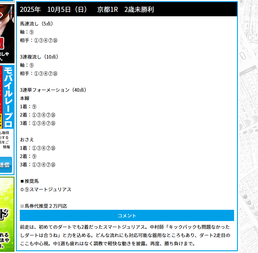 今日の無料情報で3連単239.6倍の的中貰えました!